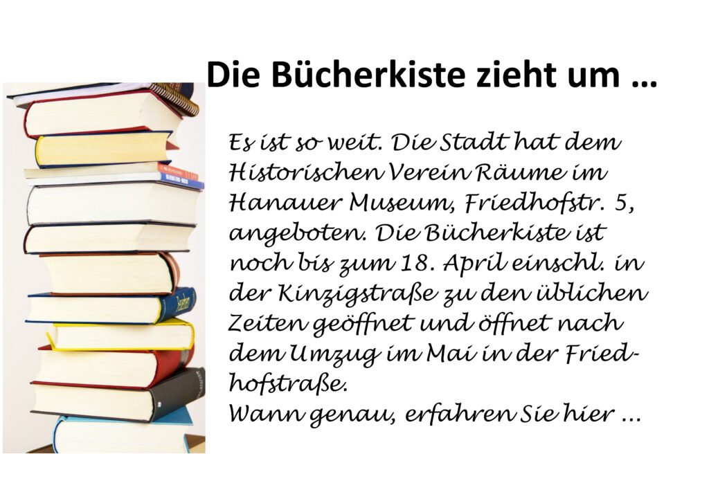 Seit mehr als 20 Jahren gibt es sie schon, die Bücherkiste des Historischen Vereins Kehl. In einer Garage an der Friedhofstraße kam sie zur Welt. Damals hieß sie noch Bücherflohmarkt. Er wurde von Idealisten betrieben, die aus Respekt vor dem Kulturgut Buch Bücher aus Haushaltsauflösungen nicht einfach einer Grünen Tonne anvertrauen wollten. So dehnte sich der Bücherflohmarkt allmählich aus, und die Garage reichte bald nicht mehr.